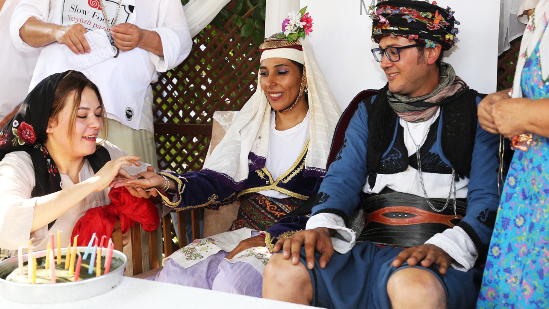 Muğla'da geçen yıl düzenlenen Düğün Yemekleri Festivali'nde birbirlerini tanımayan Halit Güneş ve Didem Baka, temsili düğünde gelin ve damat rolünü canlandırdı.