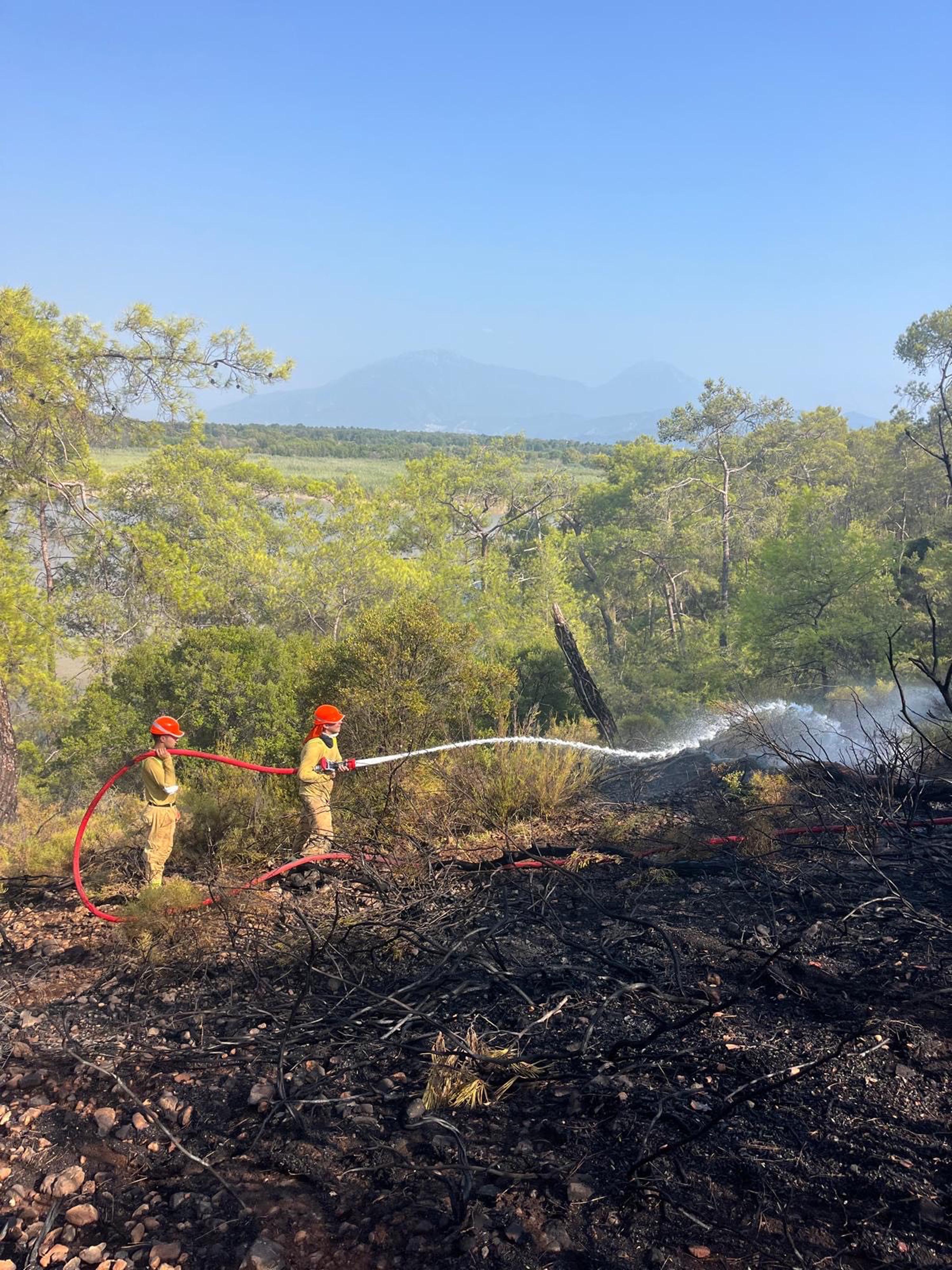 Söndürme çalışmalarına itfaiye ekipleri de destek verdi. Alevler, havadan ve karadan yürütülen yoğun müdahale sonucu 2,5 saatlik çalışmanın ardından saat 18.00 itibarıyla kontrol altına alındı.