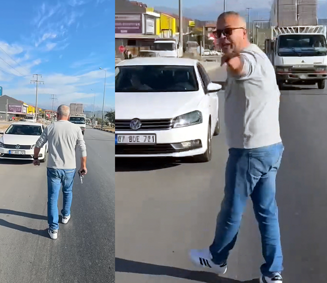 Harun S. “Otomobilde yalnızdım, yol vermesi gereken yerde yol vermedi, ışıklarda durunca bana bağırdı ileride durup silahla üzerime geldi, yanında eşi vardı, sesimi çıkarmadım, saygımı bozmadım. Sonra karakolu gidip şahıs hakkında şikayetçi oldum” diyerek açıklama yaptı.