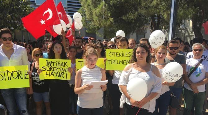 15 Temmuz'daki darbe girişiminden sonra FETÖ bağlantılı üniversiteler de kanun hükmünde kararnamelerle kapatıldı. Bu üniversitelerde eğitim gören öğrenciler, öğretim hayatlarıyla ilgili gerekli düzenlemelerin yapılması talebiyle basın açıklaması yaptı. Alsancak ÖSYM binası önünde üniversite öğrencileri adına basın açıklamasını İrem Çalışır okudu. Kapatılan vakıf üniversitelerinin 65 bin öğrencisinin hakları için toplandıklarını belirten İrem Çalışır şunları söyledi: