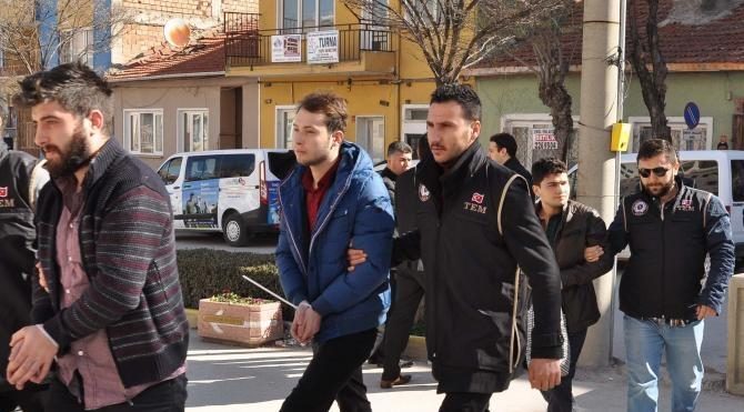 Emniyet Müdürlüğü Kaçıkçılık ve Organize Suçlarla Mücadele (KOM) Şubesi ekiplerinin düzenlediği operasyonda Eskişehir Adliyesi'nde zabıt katibi olarak görev yapan Y.A. ve İ.A. ile infaz koruma memuru O.Y. gözaltına alındı. FETÖ şüphelisi Y.A., İ.A. ve O.Y., götürüldükleri KOM şubesinde yapılan sorgulamalarının ardından bugün adliyeye sevk edildi.