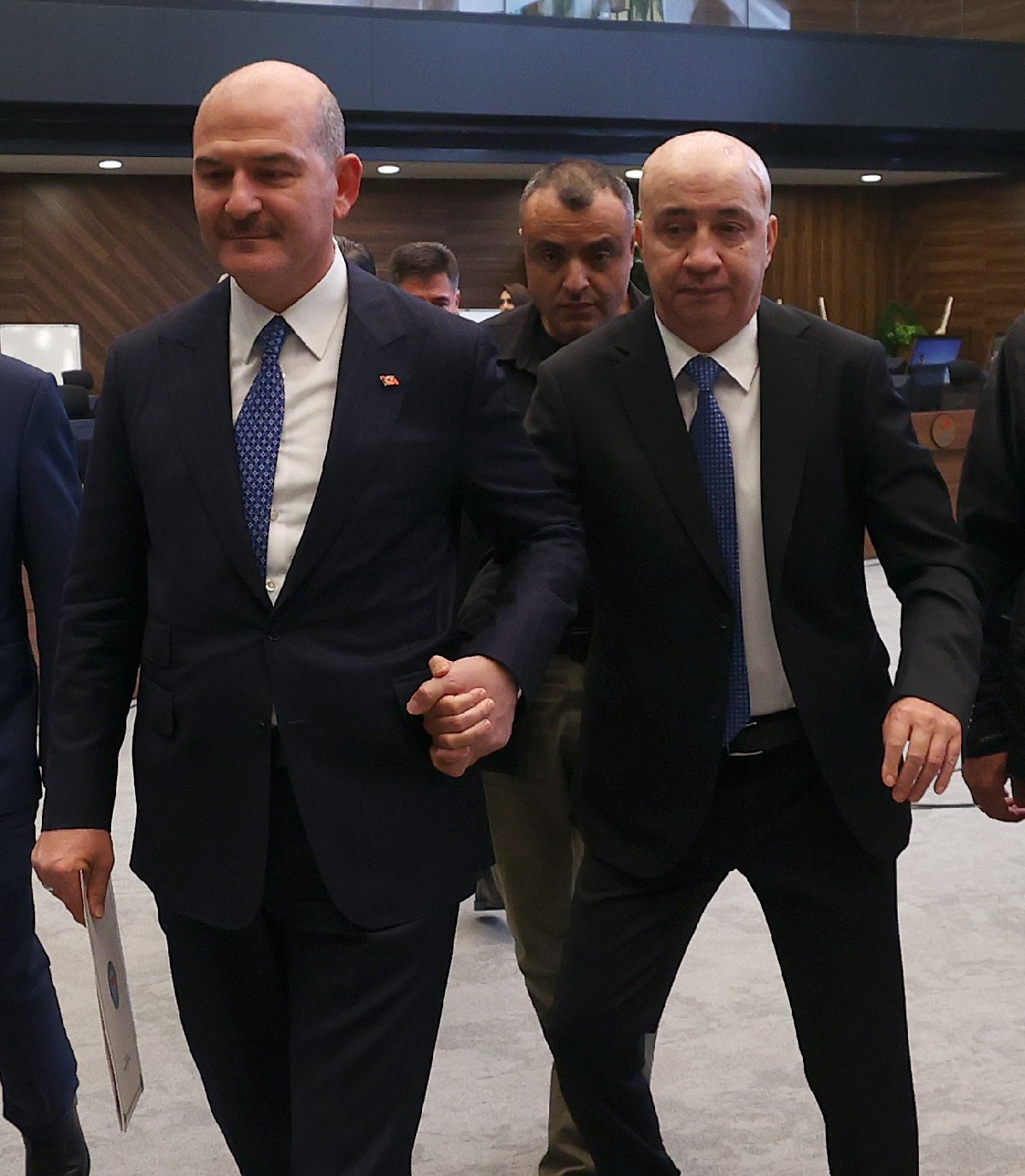 Bakan Soylu'ya eşlik eden Cumhurbaşkanı Başdanışmanı ve 15 Temmuz gazisi Turgut Aslan da operasyonda emeği geçenlere teşekkür etti. (AA)- Deşifre edilen finans aktarım yöntemleri arasında, kartsız işlem, kargo içine gizleyerek ve fiziki buluşma var. 704 gözaltı kararı var, şu ana kadar 543 kişi gözaltı alındı.