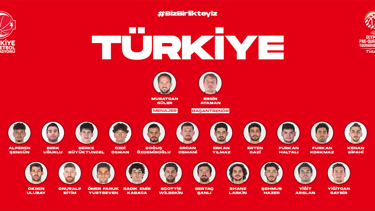 A Milli Basketbol Takımı'nın FIBA Olimpiyat Ön Eleme Turnuvası için belirlenen kadrosu belli oldu. Shane Larkin, Scottie Wilbekin, Cedi Osman, Alperen Şengün ve daha birçok yetenekli oyuncuyla donatılmış geniş kadro, turnuva öncesi heyecanı artırıyor.
