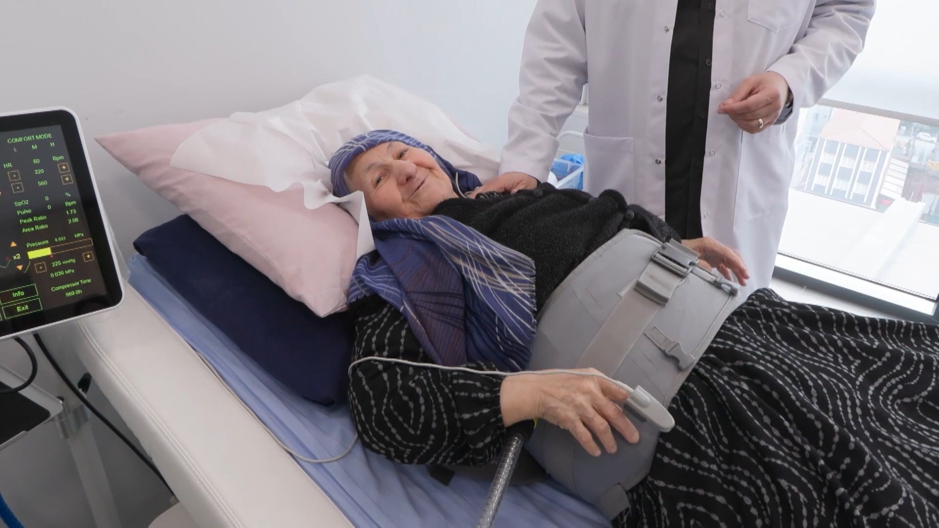 Rodoplu, "Durumu bayağı bir kötüydü; gerçekten yürüyemez haldeydi, ayağını bacağını hiç hareket ettiremiyordu. Hem enfeksiyon sorunu vardı damar iltihaplanmaları diyoruz biz bunlara. Özellikle lenf damarlarında, lenf kanallarında ve bütün damar sistemini kapsayan, vücuduna hızlı bir şekilde yayılma ihtimali olan bir enfeksiyon sorunu vardı. Ciddi damar tıkanıklıkları vardı, bacağını bu yüzden hareket ettiremez hale gelmişti. Ciddi bir ödemi, ciddi bir şişliği vardı; neredeyse bacağının kilosu, vücudunun yarısının kilosunu geçmiş durumdaydı. Biz burada 'kesmeden kurtarma ve yerinde iyileştirme' metotlarını uyguluyoruz. Hava teyzemiz 1 aylık bir tedavi için bizde. Buraya getirdiğimiz günden itibaren bilfiil her gün yoğun bir şekilde tedavilerini gerçekleştiriyoruz; 2 haftalık bir süreç içerisinde ayağa kalkıp kendi başına yürümesini sağladık. Şu an desteği de bırakmak üzere; önce destekli yürümekle başladı ama yanında kimse olmadan rahatlıkla yürüyebiliyordu. Bu da demektir ki normal hayata dönebiliyor ve aynı zamanda kendi öz bakım ihtiyaçlarını rahatlıkla karşılayabiliyor. Zaten Hava teyzemizle ilgili en önemli durumlardan biri, sizin de haberde yaptığınız kimsesinin olmamasıydı. Kimsesiz olması, kendisine bakamaması, tedavi ihtiyaçlarını giderememesi çok ayrı bir sorundu. Ben, eşim ve buradaki bütün ekip arkadaşlarım, onun tedavisinde elimizi taşın altına koyduk. Bütün tedavi masrafları dahil, merkezimizde ileri teknolojik sistemlerle yapılan tedavileri, fizyoterapileri, fizik tedavi egzersizleri ve uzmanlarımızla yaptığımız tüm tedavilerin masraflarını merkez olarak biz karşıladık. Bundan da çok memnunuz; yaptığınız bu haber bizim böyle güzel bir sonuca ulaşmamıza vesile oldu" diye konuştu.