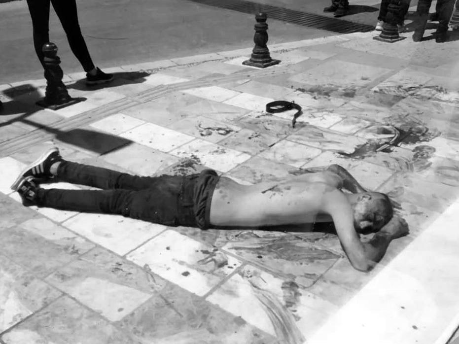 Olayın görgü tanıklarından emekli sağlık memuru 58 yaşındaki Ayşe K. “Şahıs elinde kesici aletle vücudunu kesiyordu, bazı vatandaşlar engel olmaya çalıştı, ama yanına yaklaştırmadı, sinir krizi geçiriyordu, çıldırmış gibiydi, başkasına değil sadece kendisine zarar verdi, sonradan Filistinli olduğunu öğrendik, aşırı kan kaybedince bayıldı” diye konuştu.