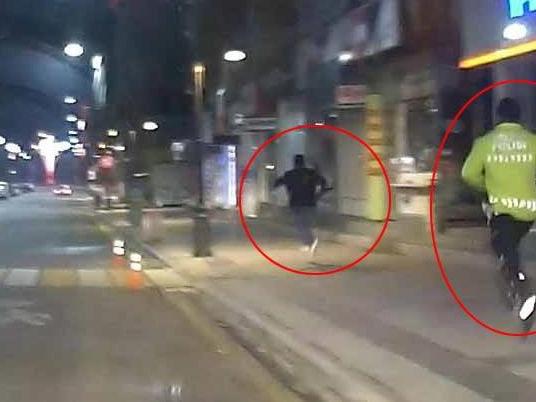 Araçtan inen gencin kaçması üzerine Trafik Tescil ve Denetleme Şubesinde görevli komiser yardımcısı gencin peşine düştü.