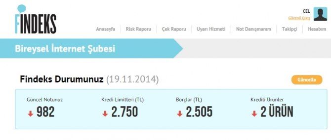 findeks.gen.tr blog sitesindeki rehber habere göre kredi notu sorgulama işlemi yapanlar, aşağıdaki gibi bir ekranla karşılar. Bu ekranda kişilerin güncel kredi notunun ne olduğu ve Türkiye’ye göre durumun ortalamanın altında mı yoksa üstünde mi olduğu görülür.