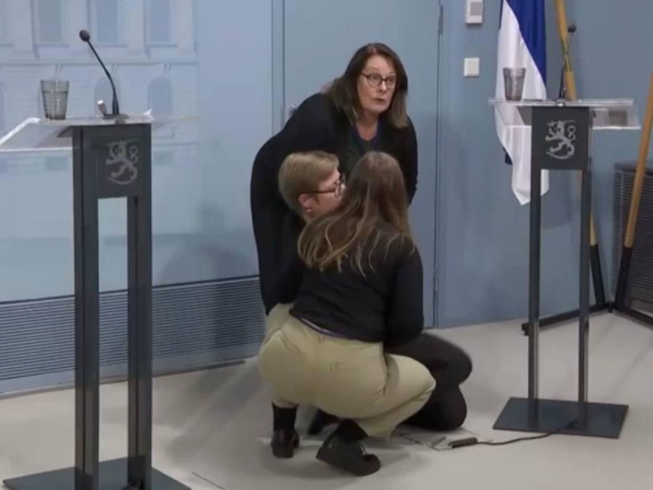 Finlandiya İçişleri Bakanı Krista Mikkonen, Kuzey Akım 2 ile ilgili canlı yayınlanan bir hükümet brifingi sırasında bayıldı.