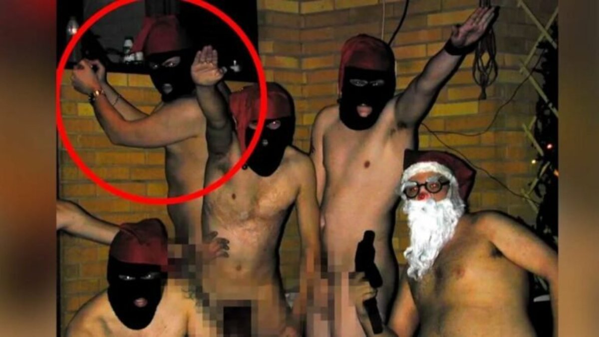 Fotoğraflarda bir grup çıplak erkekle poz veren Lindtman'ın yanında duran bazıları Nazi selamı verirken görülüyor. Lisedeyken bir Noel partisinde çekildiği belirtilen fotoğraflarda Lindtman oyuncak bir tabanca da tutuyor.