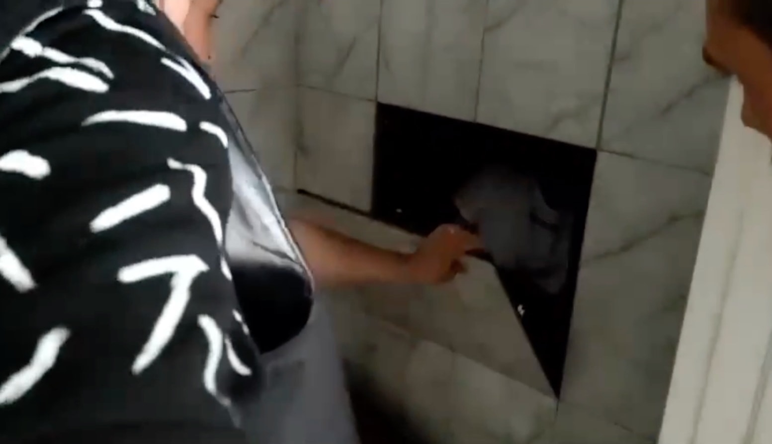 Uygulama kapsamında bir evde arama yapan ekipler, banyodaki duvar fayansının arkasında bölme olduğunu fark etti.