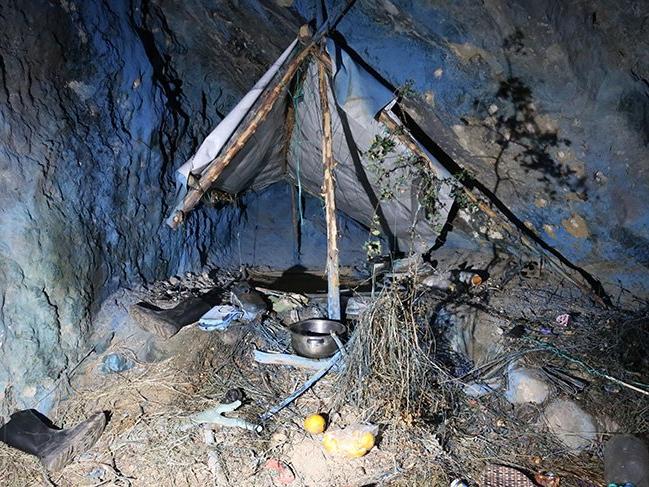 Bir mağaranın önüne çadır kuran ve yaşam malzemeleri ile donatan Özer jandarmayla girdiği çatışmada öldürüldü. Foto:AAMağaranın içini maviye boyamış
