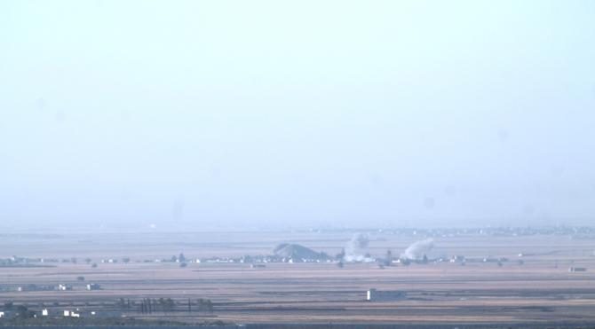 FIRAT Kalkanı Harekatı'nın 45'inci gününde, Kilis'in karşısında bulunan Suriye'deki IŞİD hedefleri havadan ve karadan bombalanıyor.