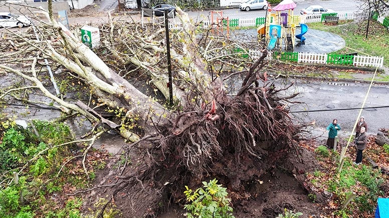 Sabah erken saatlerde ağacın devrildiğini görenlerin ilgili birimlere ihbarda bulunması üzerine anıt ağacın çevresine güvenlik şeridi çekildi.
