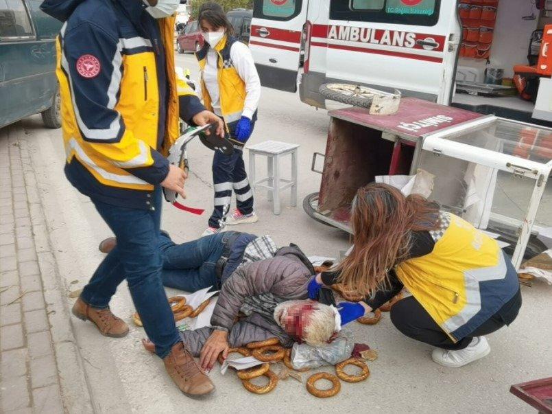 Olay, dün İnegöl ilçesi, Burhaniye Mahallesi, Kemallettin Sami Paşa Caddesi'nde meydana geldi. Caddede ilerlediği sırada simitçi Mahmud Beradei, fırtına nedeniyle devrilen simit arabasının altında kaldı. Simitler yola açılırken, Beradei başından aldığı darbe ile ağır yaralandı.