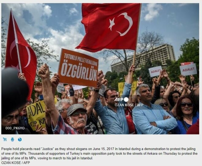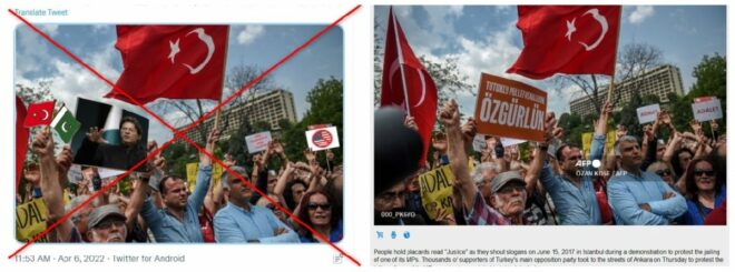 Fotoğrafın photoshop'lu hali(solda) ve AFP'nin yayınladığı orijinaliFotoğraf, kısa sürede yüzlerce kişi tarafından sosyal medyada paylaşılırken, bir süre sonra işin aslı ortaya çıktı. Fotoğrafın aslında gerçek olmadığı ve photoshop ile oynandığı belirlendi. Fransa merkezli AFP ajansı, fotoğrafın kendilerine ait olduğunu ve 2017 yılında gazeteci ve milletvekili Enis Berberoğlu'nun hapse atılmasının protesto edildiği sırada çekildiğini açıkladı. Fotoğrafın gerçek hali paylaşıldı.