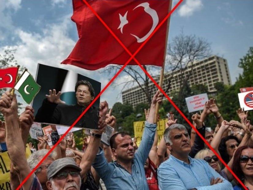 Pakistan'daki protestolara katılanlar ve Khan'ı destekleyenler, tüm dünyadan kendilerine destek yağdığını öne süren sosyal medya paylaşımları yaptı. 6 Nisan'da Pakistan'da Khan destekçileri tarafından atılan bir tweette 'Rusya'dan sonra Türkiye'de de ABD'nin rejim değişikliğine karşı protestolar düzenlendi." başlığı atıldı. İstanbul'da çekildiği iddia edilerek paylaşılan görüntülerde Türk bayraklarının yanı sıra Imran Khan posteri ve ABD bayrağının üstünün çizildiği bir döviz yer aldı.