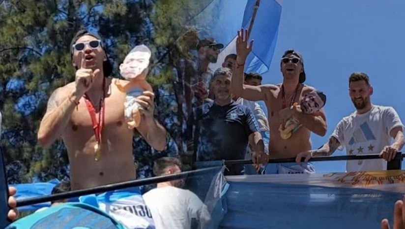 Buenos Aires'teki kutlamalar sırasında Üstü açık otobüste Arjantin halkını selamlayan Martinez, üzerinde Mbappe’nin suratının yer aldığı bir oyuncak bebekle kameralara takılmıştı.