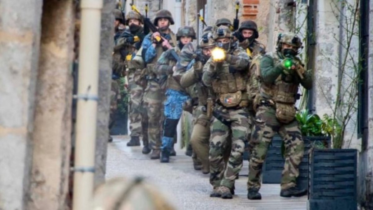 Fransız ve İngiliz askerlerinin şehrin merkezinde yaptığı tatbikat sosyal medyada alay konusu oldu. Yaklaşık 300 asker, yayalar ve araçlar arasında savaş sahnesi canlandırdı.