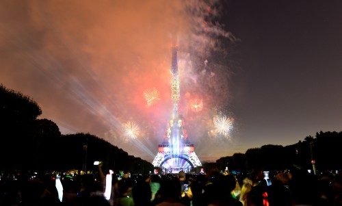 Başkent Paris'in sembollerinde Eiffel Kulesi'nde havai fişek gösterisi yapıldı.