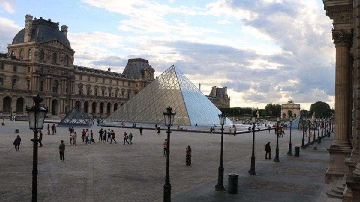 Fransız basınında yer alan görüntülerde, Genel İş Sendikası (CGT) bünyesindeki kültür çalışanları, ellerinde sendikanın bayraklarıyla müzenin avlusunda bulunan cam ve metalden oluşturulmuş piramidin önünde toplandı.