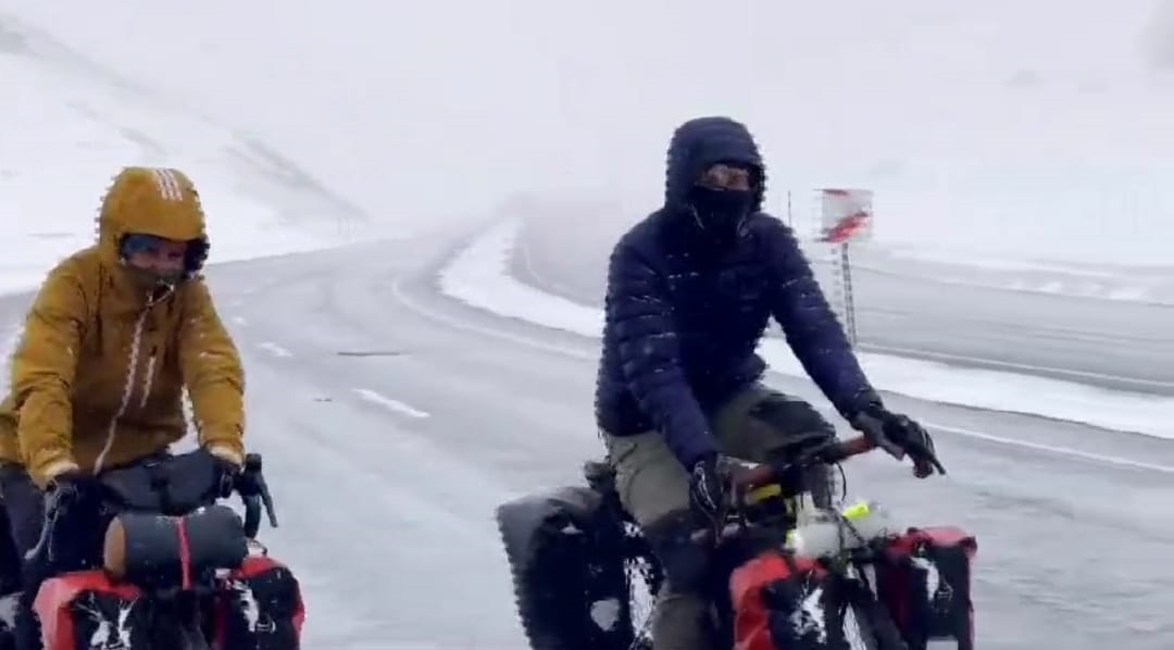 Şu ana kadar 8 bin kilometre yol kat eden çift, dün havanın güneşli olması nedeni ile Van' a doğru yola çıktı. Bisikletleriyle Van'a 90 kilometre uzaklıktaki 2 bin 750 rakımlı Güzeldere Geçidi'ne ulaşan çift, burada aniden bastıran tipiye yakalandı.