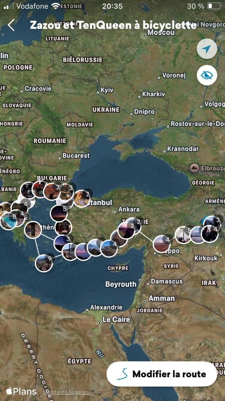 Fransa’dan 7 ay önce bisikletleriyle yola çıkan ve Güney İtalya, Yunanistan, Makedonya, Bulgaristan´ı geçip Türkiye´ye giriş yapan Fransız çift Quentin Oustelandt ve Zoë Lepilleur, Edirne, Lüleburgaz, İstanbul, Çanakkale, İzmir, Bodrum, Fethiye, Antalya, Göreme (Kapadokya), Antep, Urfa, Diyarbakır, Mardin üzerinden Hakkari'ye geldi.