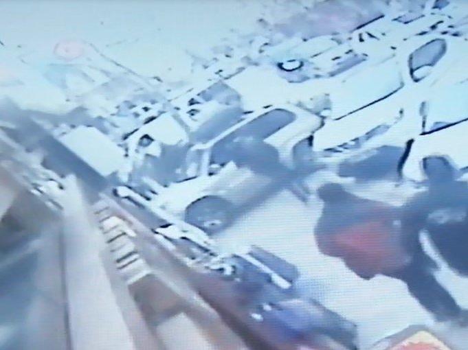 Kadın sürücünün kaza anı ise güvenlik kameralarına yansıdı. Görüntülerde, dükkanın önünde bekleyen bir vatandaşın son anda kurtulduğu görülüyor.