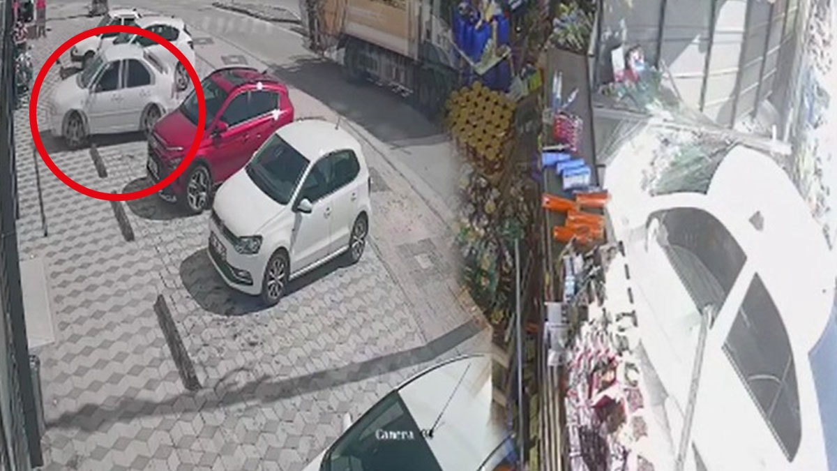 Kaza anı marketin güvenlik kamerasınca kaydedildi.
