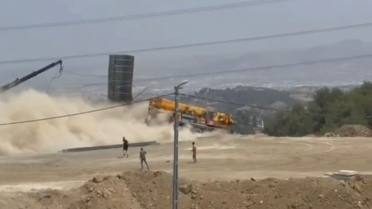 M.E. (21) idaresindeki vinç, freninin arızalanması nedeniyle Karlısu Mahallesi'ndeki bir şantiye alanında park halinde bulunan tır ve hafif ticari araca çarpıp uçuruma yuvarlandı.