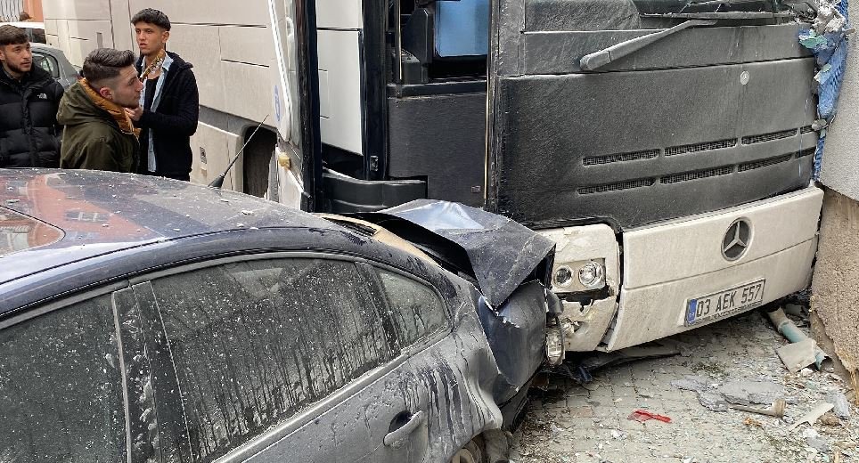 Kütahya'da içinde yolcu bulunmayan otobüs, freninin boşalması sonucu park halindeki 6 araca ve apartmana çarptı. Kazada ölen ya da yaralanan olmadı.