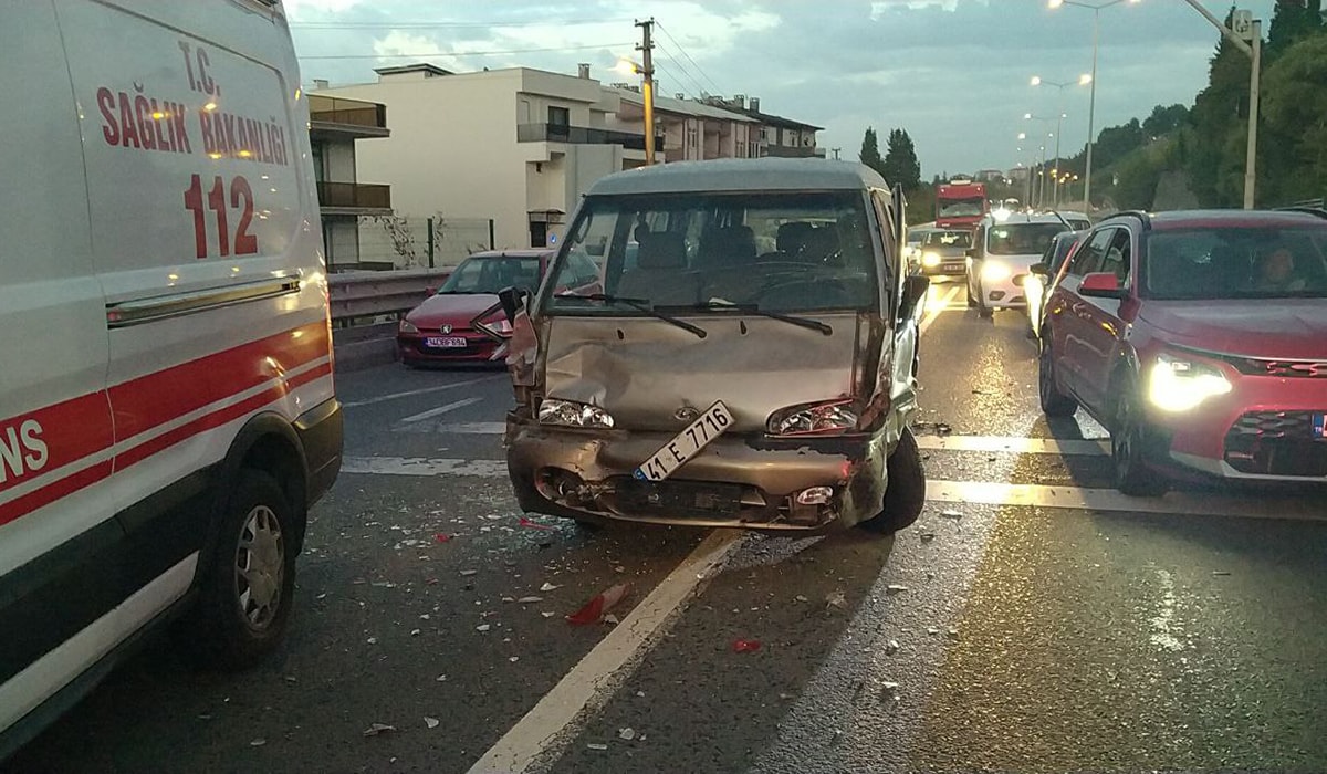 Gölcük ilçesi D-130 Karayolu Ulaşlı ışıkları mevkisinde saat 18.00 sıralarında Bursa yönüne giden Osman K. (87) yönetimindeki minibüs, fren sisteminin arıza yapması sonucu kontrolden çıkarak, kırmızı ışıkta bekleyen araçlara çarptı.