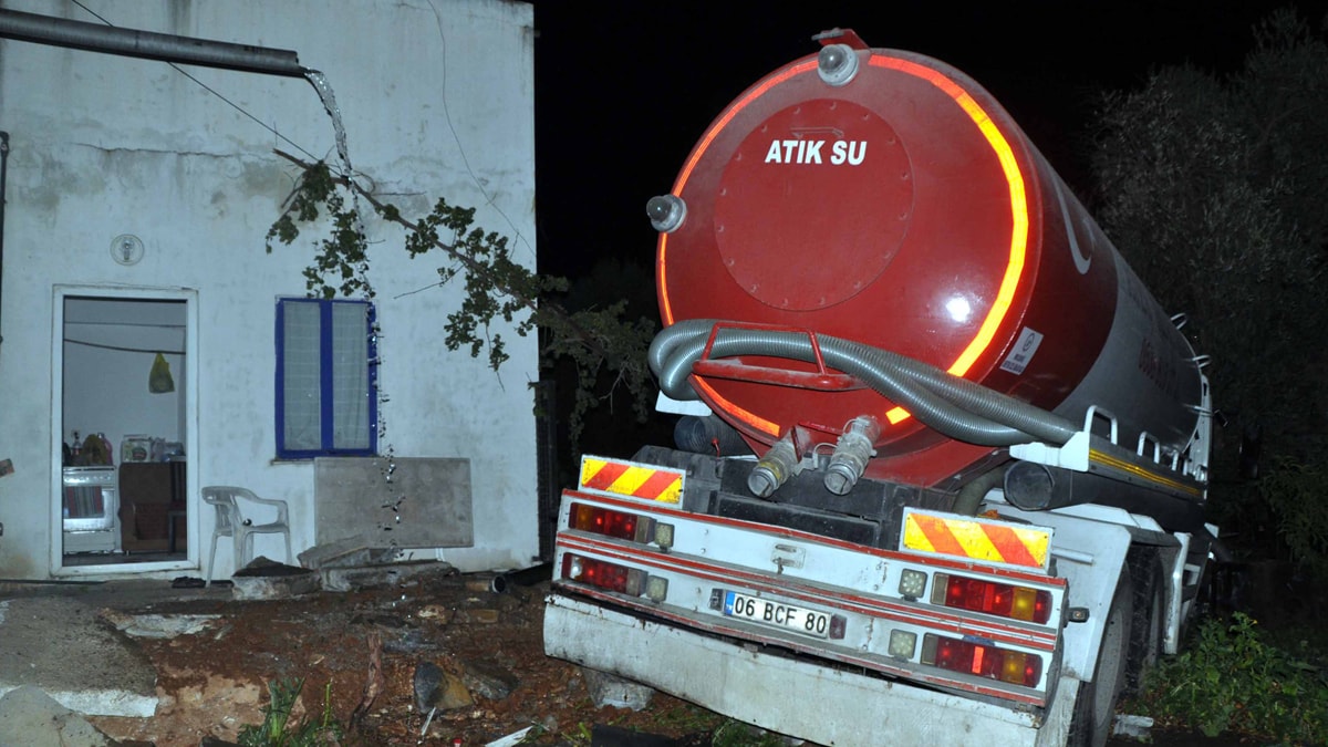 Muğla’nın Bodrum ilçesi Umurca Mahallesi Dr. Mümtaz Ataman Caddesi’nden yokuş aşağı inen Tuncay Tural yönetimindeki 06 BCF 80 plakalı vidanjörün freni patladı.