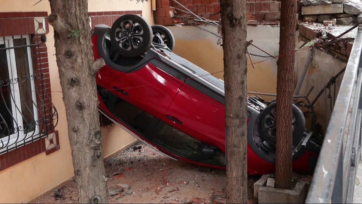Kazayı gören Recep Cesur, "Komşumuz aracını apartmanın önüne park etmeye çalışırken sanıyorum gazla freni birbirine karıştırdı. Ben de camdaydım olayı gördüm. Aracın sol ön tekerleği boşa düşünce, aşağı komşumuzun bahçesine bu şekilde uçmuş oldu. Kendisinin sağlık durumuyla ilgili çok sıkıntılı bir durum yok, ama 112 hemen geldi müdahale ettiler. Tedbir amaçlı hastaneye kaldırıldı. Şu anda sağlığıyla ilgili bir sıkıntımız yok" dedi.