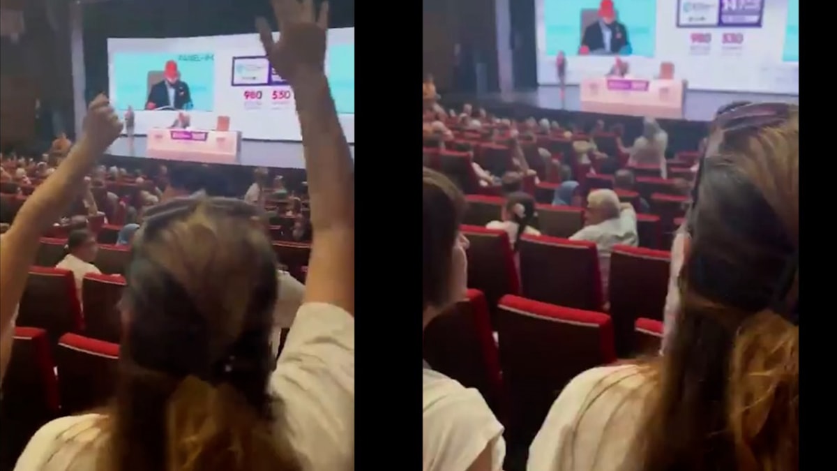 Protestoya güvenlik görevlileri müdahale ederek, protestocuları salondan çıkardı. Ancak bu müdahale sırasında güvenlik güçlerinin sert tutumu, tepkiyle karşılandı.