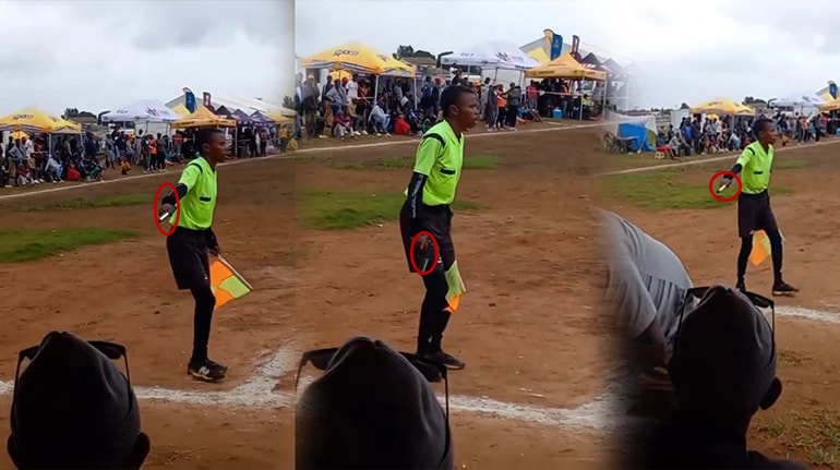 Güney Afrika'da bir maç sırasında bir yan hakemin elinde silah sallaması sosyal medyada büyük tepki çekti.