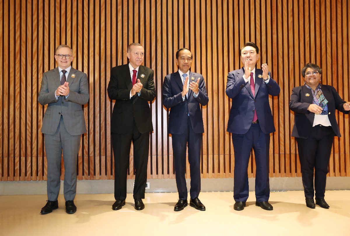 Erdoğan, MIKTA Liderler Buluşmasına katıldı. (AA)Cumhurbaşkanı Erdoğan, zirve kapsamında Türkiye, Meksika, Endonezya, Güney Kore ve Avustralya'dan oluşan kıtalar arası gayriresmi istişare ve eş güdüm platformu MIKTA üyesi ülkelerin devlet başkanlarıyla da bir araya geldi. (AJANSLAR)