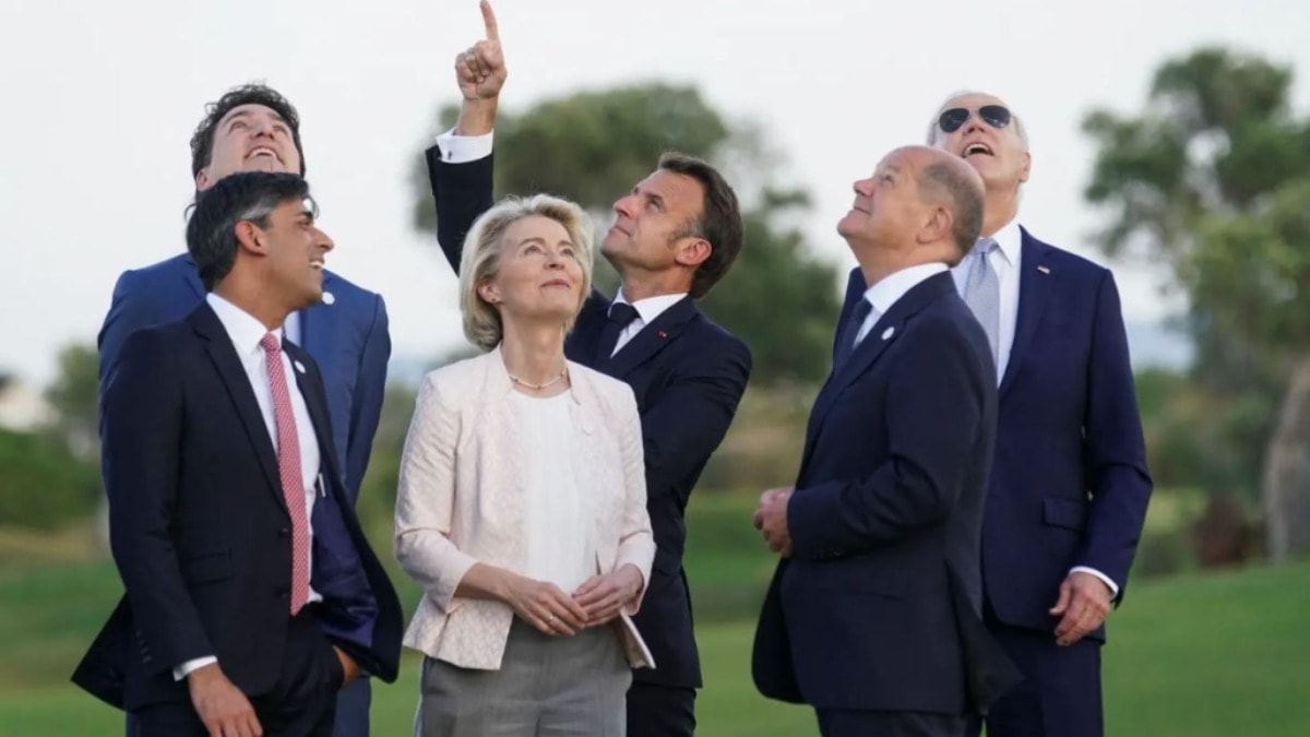 Biden, etkinliğin ev sahibi İtalya Başbakanı Giorgia Meloni'yi tuhaf bir şekilde selamlamış ve daha sonra paraşütçülerin yaptığı gösteri sırasında diğer liderlerden uzaklaşarak başka bir şeye odaklanmıştı. Görevini tamamlayan paraşütçülerin yanına giden Biden'ı daha sonra Meloni kolundan yönlendirerek kameraların karşısına getirmişti.