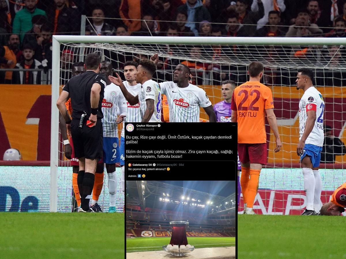 Galatasaray'ın sosyal medya hesabından yapılan paylaşımda, "Siz çayınızı kaç şekerli alırsınız? Admin: 4" ifadelerini kullanarak Ali Sami Yen Nef Stadyumu'nda dört şekerli bir çay fotoğrafı yer aldı. Rizespor ise, bu paylaşıma alıntı yaparak, "Bu çay, Rize çayı değil. Ümit Öztürk, kaçak çaydan demledi galiba! Bizim de kaçak çayla işimiz olmaz. Zira çayın kaçağı, sağlığı; hakemin eyyamı, futbolu bozar!" yanıtını verdi.