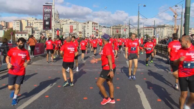 Galata Köprüsü'ndeki koşuya bin beş yüz sporcu katıldı. Koşu için bazı cadde ve meydanlar trafiğe kapandı.