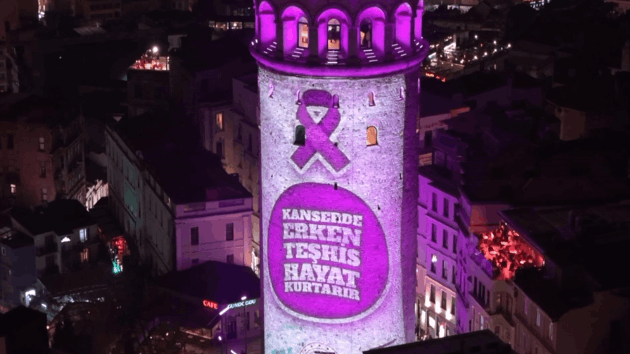 İstanbul İl Sağlık Müdürlüğü tarafından 'Kanserde erken teşhis hayat kurtarır' temasıyla farkındalık oluşturmak için, İstanbul'un simge yapısı Galata Kulesi'ne mor ışık yansıtıldı. Mor renge bürünen Galata Kulesi havadan görüntülendi.