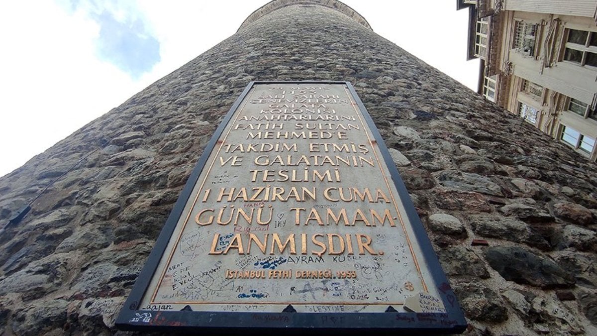 Yüzyıllardır ayakta olan, İstanbul'a gelen yerli ve yabancı turistlerin ilk görmek istediği yapılardan olan Galata Kulesi'nin kitabe ve duvarı isim tabelasına döndü.