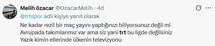 Skor ve dakika bilgileri de ekrandan kaybolurken, seyirciler sosyal medyada TRT'ye tepki gösterdi. Saha içi kamerasından maçın izlenmesinin zorluğundan şikayet eden seyirciler, TRT'nin yayın kalitesine isyan etti.