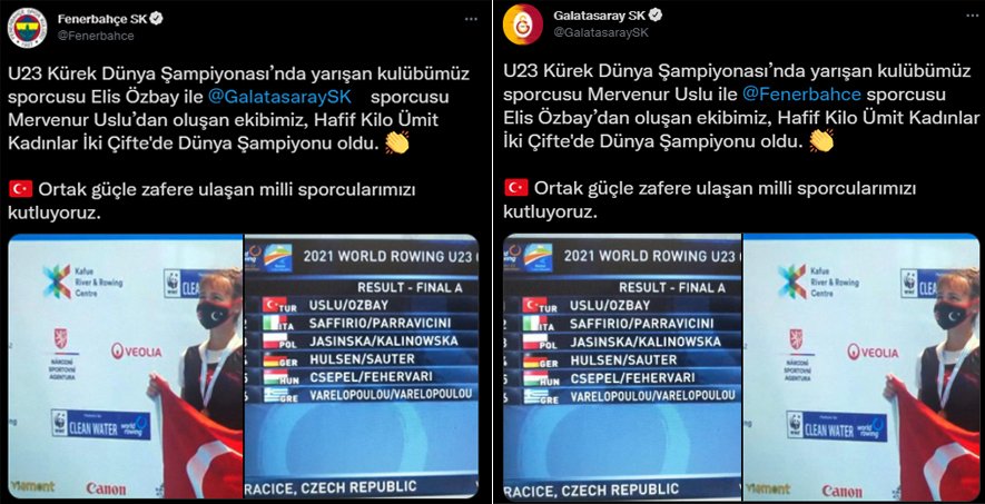 Bu başarı sonrası Fenerbahçe ve Galatasaray'ın resmi Twitter hesaplarından ortak bir kutlama mesajı yayınlandı. Geçtiğimiz günlerde futbolda Kulüpler Birliği'nin yayınladığı bildiriyi ortaklaşa yayınlayan iki ezeli kulübün, bu konuda da birlikte hareket etmesi sosyal medyada olumlu yorumlar yapılmasına neden oldu.