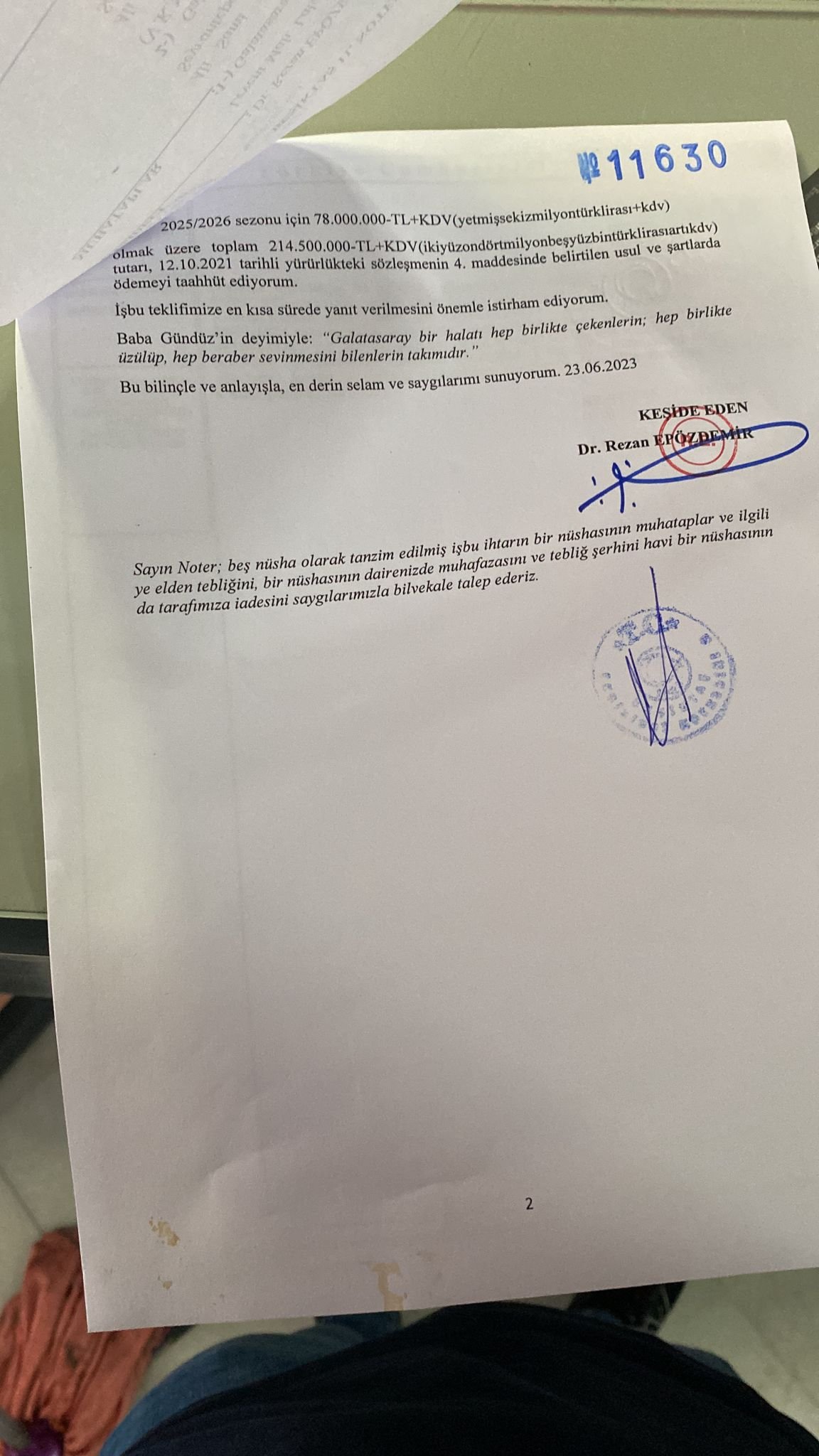 Galatasaray'da önceki dönemde başkan yardımcılığı görevini yürüten Hukukçu Dr. Rezan Epözdemir, sarı-kırmızılı kulübe sürpriz bir sponsorluk teklifinde bulundu. Epözdemir, 12 Kasım 2021 tarihli mevcut stat isim sponsorluğu anlaşmasındaki bedellerin yüzde 30 artırılmış halini noter onaylı bir teklif ile kulübe tebliğ etti.