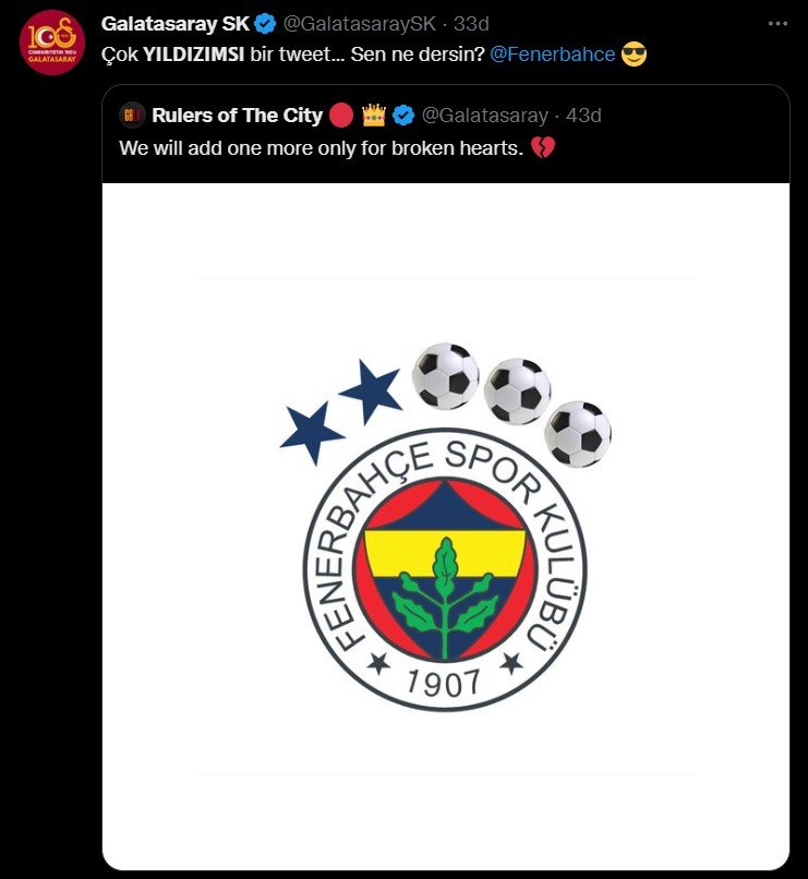 Fenerbahçe'nin "Our City Our Rules" pankartı sonrası Galatasaray, İngilizce hesabının adının "Rulers of the City" olarak değiştirdi.