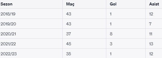 Son 5 sezon Angelino'nun istatistikleri