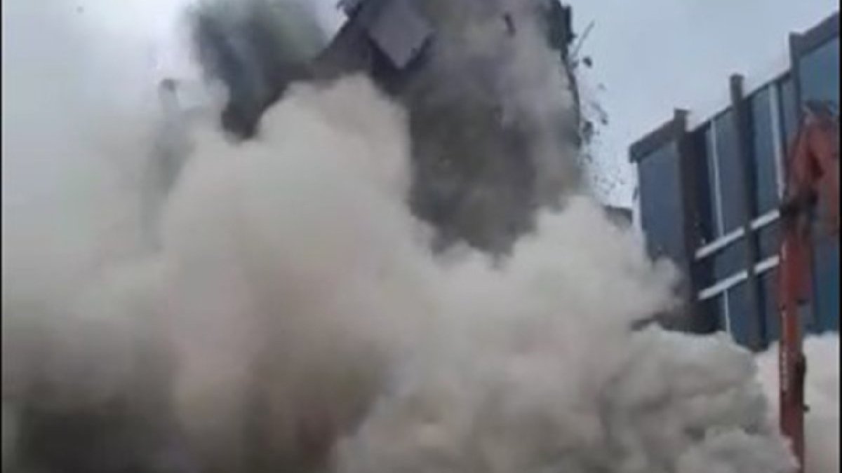 Diyarbakır'da depremde ağır hasar alan ve 1 bloku yıkılan Galeria Sitesi'nin kontrollü yıkımı sırasında, ayakta kalan son bloku çöktü. O anlar kameraya yansıdı.
