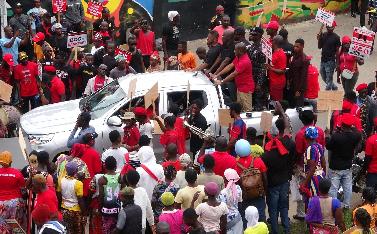 Ana muhalefet partisi milletvekillerin çağrısıyla başkent Akra'da bir araya gelen yüzlerce protestocu, artan ekonomik sıkıntı ve hayat pahalılığı nedeniyle hükümeti protesto etti.