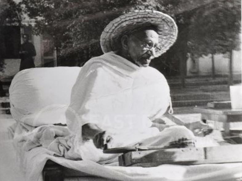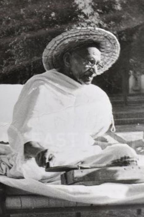 Gandhi'nin fotoğrafı, 1947'de Nandubahen'de Yeni Delhi'deki Birla House'da kişisel doktoru Doktor Kanuga tarafından çekildi. 30 Ocak 1948'de suikaste uğramadan önce 144 gün boyunca burada kaldı.