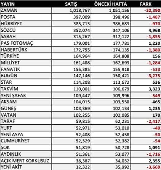 Gazete tirajları açıklandı. Bir çok gazetenin tirajı düşerken SÖZCÜ Gazetesi yine halkın güveni sayesinde tiraj artırmaya devam etti. Bayi satış istatistikleri incelendiğinde gazete tirajlarında SÖZCÜ gazetesinin 30 Haziran – 06 Temmuz haftasında tirajını 4 bin 968 artırdığı görüldü. SÖZCÜ'nün satışı 352 bin 74 olarak gerçekleşti. SÖZCÜ, Posta ve Hürriyet’in ardından Türkiye’nin en çok satın alınan gazetesi oldu. İşte haftalık gazete tirajları...
